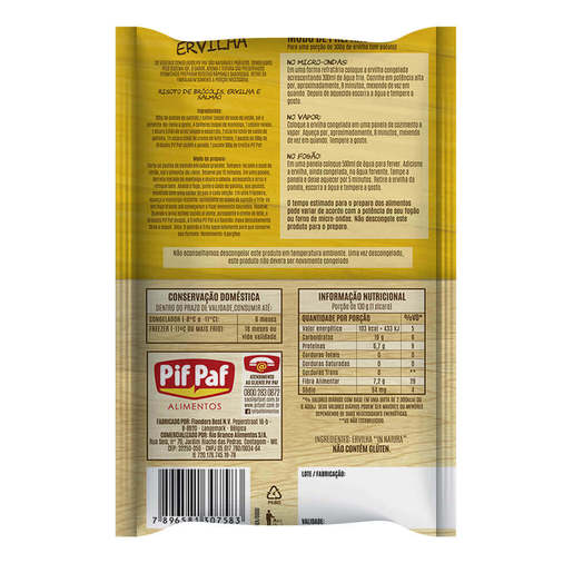 Os vegetais congelados Pif Paf são 100% naturais, sem aditivos ou conservantes. Congelados pelo sistema IQF, o sabor, aroma, textura e nutrientes são preservados, permitindo preparar receitas rápidas e saborosas. 24 pacotes de 300g, totalizando 7,2kg.
